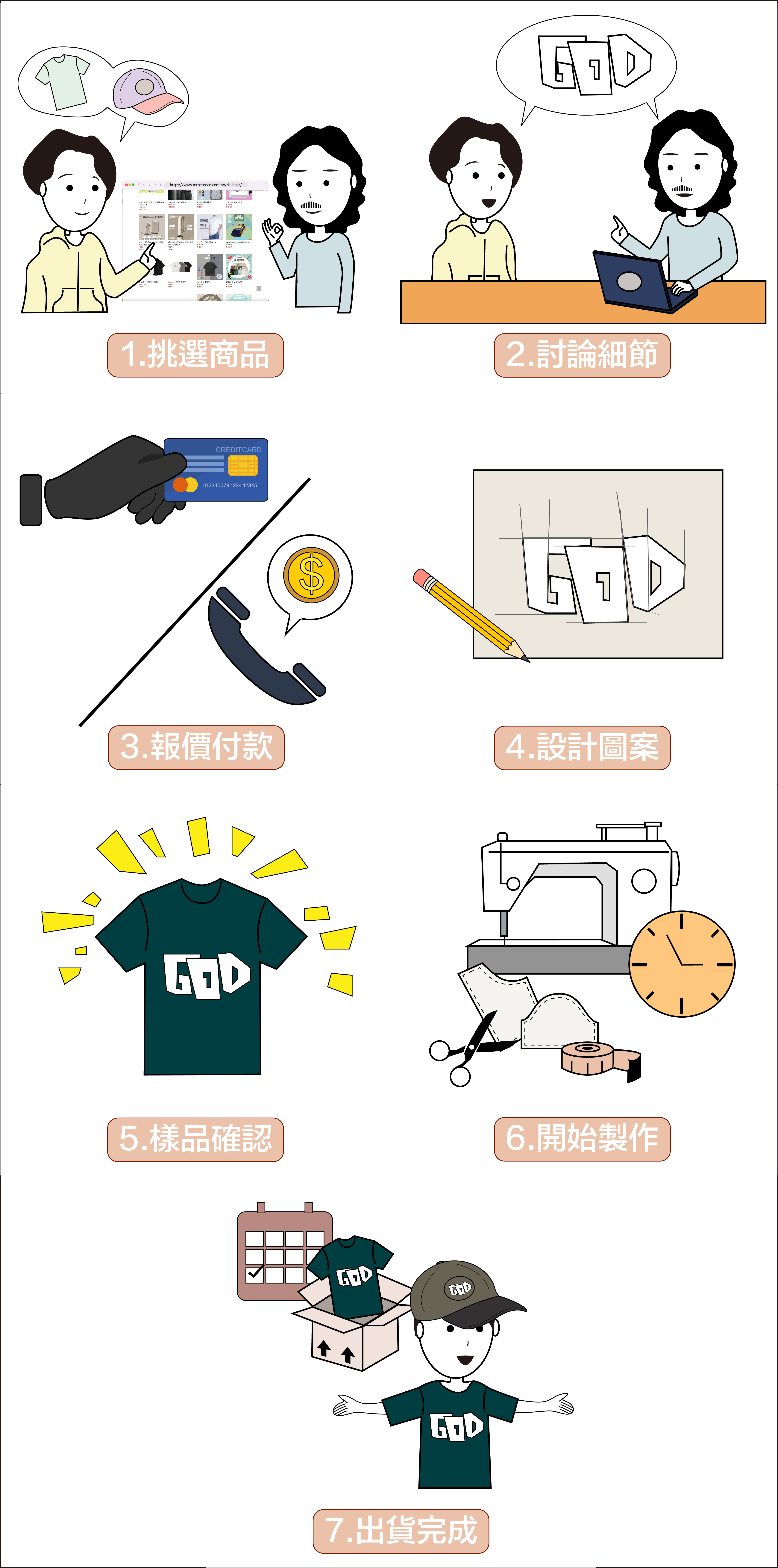 👕不管是圖案、文字、LOGO,我們都可以幫你製作,平價又快速。